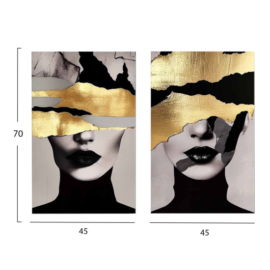 Οι πίνακες τοίχου μεταμορφώνουν τον τρόπο που αντιλαμβανόμαστε έναν χώρο. Διακοσμήστε, λοιπόν, τον χώρο σας με την καινούργια σειρά πινάκων τοίχου GOBI! Αυτοί οι πίνακες (2τμχ) με το χαρακτηριστικό χρυσό χρώμα σε μεγάλο μέρος τους απεικονίζουν γυναικεία πρόσωπα, και έχουν υλοποιηθεί σε εκτυπωμένο καμβά σε πλαίσιο από ξύλο πεύκου, και μπορείτε να τους τοποθετήσετε είτε μαζί, είτε σε διαφορετικά σημεία τον καθένα!