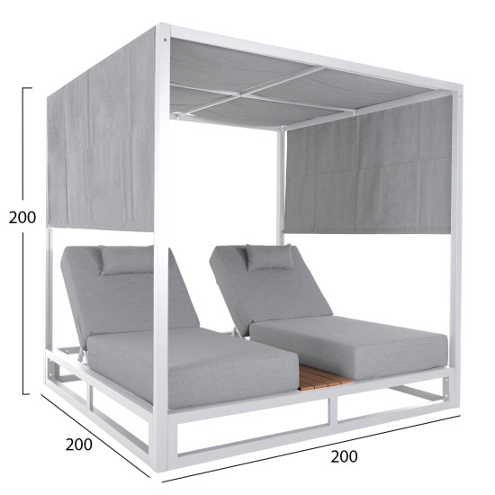 Διπλη ξαπλωστρα αλουμινιου παραλιασ με σκιαστρο κυβοσ gallant hm6097.02 λευκο 2x2x2μ **