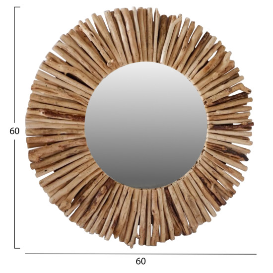 O καθρέπτης ΗΜ7720 είναι πραγματικά ένα εντυπωσιακό κομμάτι στην διακόσμηση του σπιτιού σας! Το design του είναι μοναδικό με την αριστοτεχνικά κατασκευασμένη κυκλική διάταξη των θαλασσόξυλων, τα οποία στο κέντρο τους «φιλοξενούν» τον καθρέπτη. Τα ξύλα είναι στο φυσικό τους χρώμα και οι διαστάσεις όλης της κατασκευής είναι ικανοποιητικές.