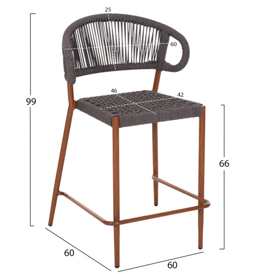 Σκαμπο μπαρ μεσ.υψουσ eulo hm6087.01 αλουμινιο καρυδι-συνθ.rattan γκρι 60x60x99υεκ. **