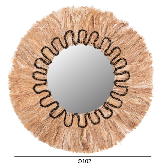Καθρεπτησ στρογγυλοσ με πλαισιο ινεσ αμπακα χρωμα φυσικο μαυρο φ100εκ.hm7749 **