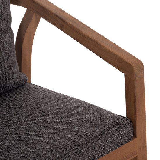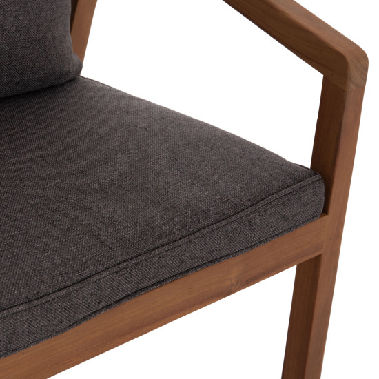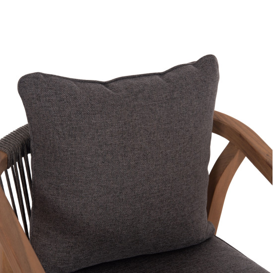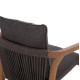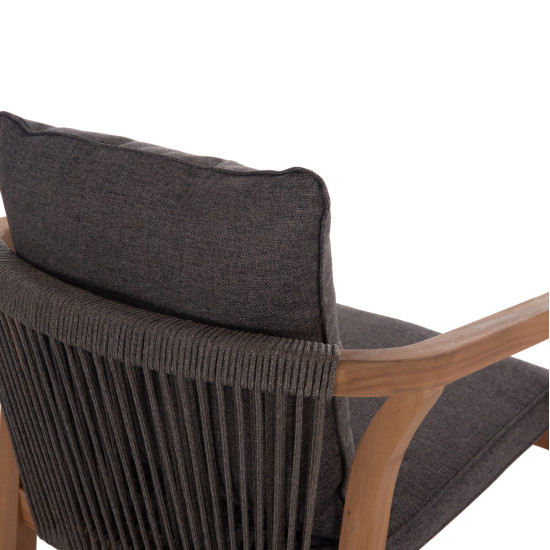 Η πολυθρόνα τραπεζαρίας εξωτερικού χώρου CONTREL είναι κατασκευασμένη από ποιοτικό ξύλο ακακίας και σχοινί σε ΓΚΡΙ χρώμα. Το κάθισμα είναι από ξύλο ενώ στην πλάτη υπάρχει η επένδυση με το σχοινί. Η πολυθρόνα διαθέτει μαξιλάρια σε ΓΚΡΙ χρώμα τόσο στο κάθισμα όσο και στην πλάτη.