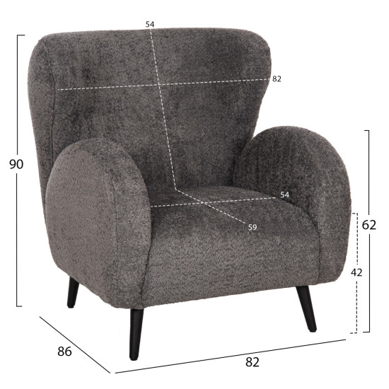 Πολυθρονα μπερζερα kryly hm9593.01 γκρι μπουκλε-μαυρα ξυλινα ποδια 83x87x89υεκ **