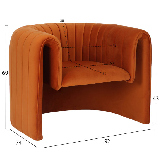Πολυθρονα riker hm9682.05 μεταλλικοσ σκελετοσ-πορτοκαλι βελουδο 92x74x69υεκ. **