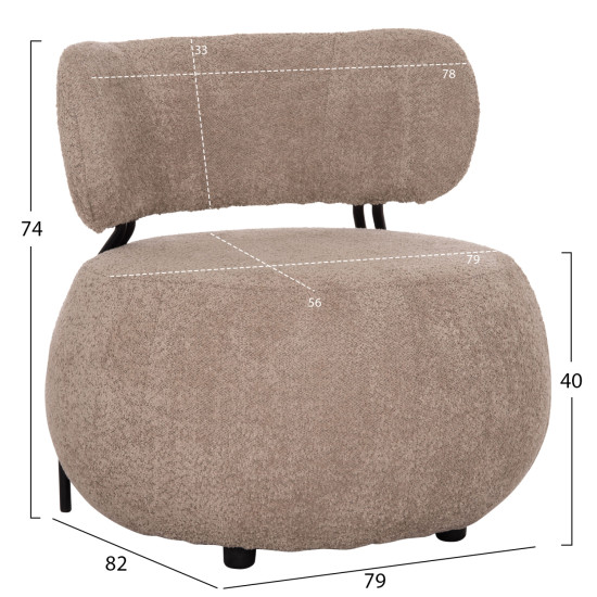 Πολυθρονα στρογγυλη karsen hm9598.08 σκουρο μπεζ μπουκλε υφασμα 79x82x74υεκ. **