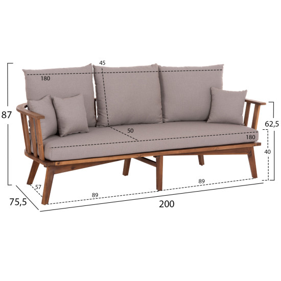 Σετ σαλονι εξωτ.χωρου 4tmx harra hm6236 ξυλο ακακιασ φυσικο--μαξιλαρια γκρι **