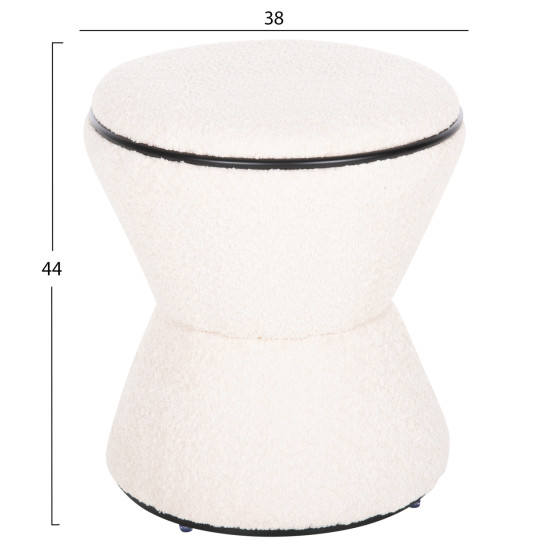 Σκαμπο στρογγυλο linner hm9604.06 μπουκλε υφασμα εκρου-μαυρη λεπτομερεια φ38x44 εκ. **