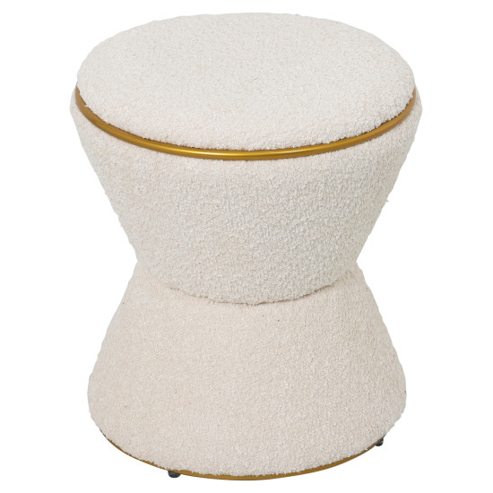 Σκαμπο στρογγυλο linner hm9604.16 μπουκλε υφασμα εκρου-χρυση λεπτομερεια φ38,5x43υ **