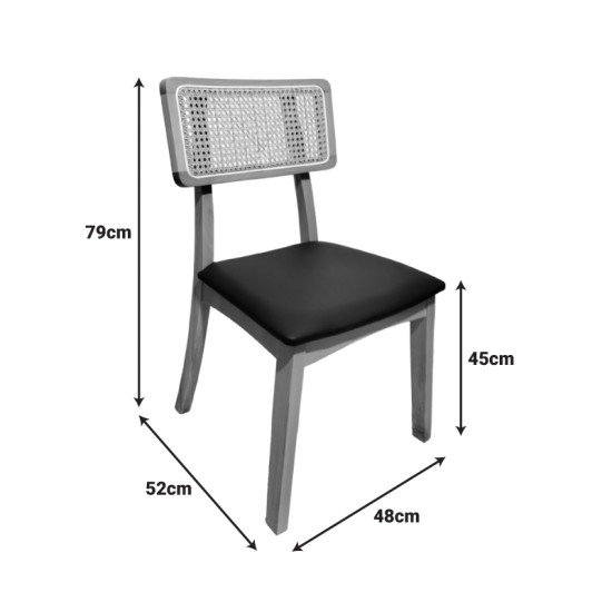 Καρέκλα Renna ξύλο οξιάς σε φυσική απόχρωση με μαύρο pu μαξιλάρι 48x52x79εκ - 2τμχ. **