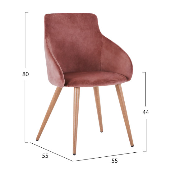 Πολυθρονάκι IVYμε μπράτσα επενδυμένο με βελούδο σε απόχρωση σάπιο μήλο. Τα πόδια είναι μεταλλικά, βαμμένα έτσι ώστε να αποδίδουν την όψη του ξύλου.